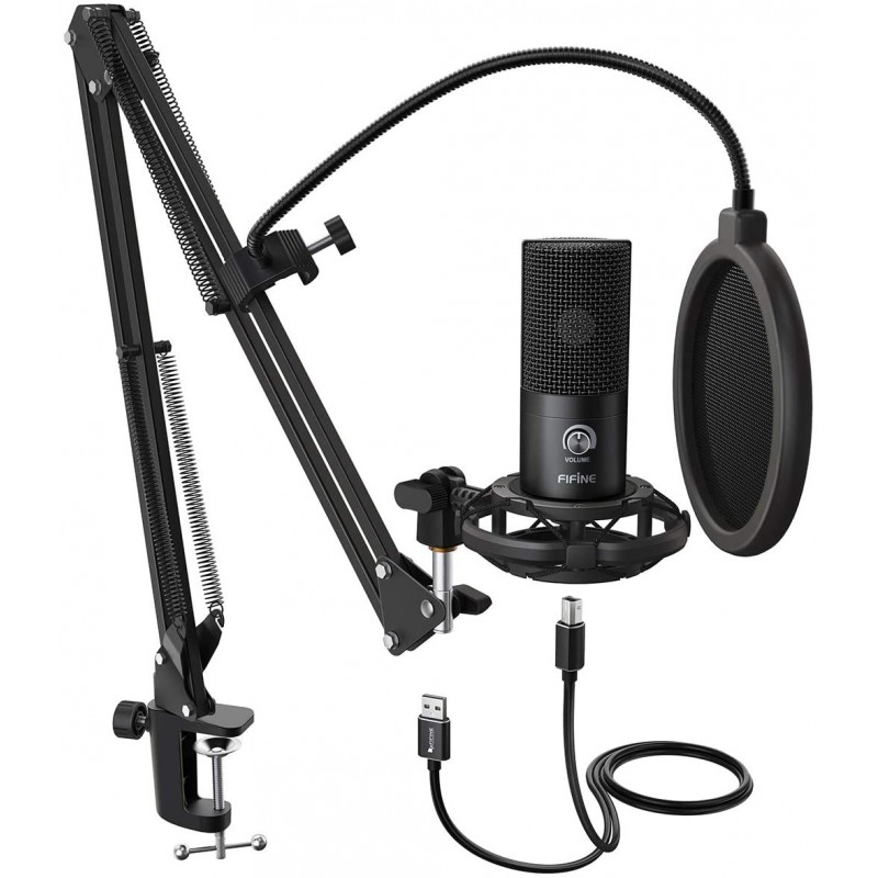 FIFINE Studio Condensador USB Micrófono de ordenador PC Kit de micrófono con brazo de tijera ajustable Soporte de choque para instrumentos Voz Overs Grabación Podcasting YouTube Karaoke Gaming Streaming-T669